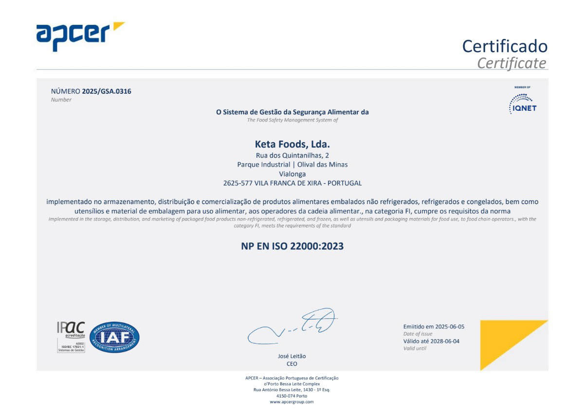 A Keta Foods, fundada em 2008, é especializada na importação e distribuição de produtos asiáticos, com foco na gastronomia japonesa. Como subsidiária da Cominport Distribuición, SL, decidiu implementar a ISO 22000:2023, reforçando a segurança alimentar, a confiança dos clientes e a reputação internacional, facilitando também as exportações.